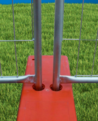 • Dotări: Stabilitatea cadrelor este asigurată cu ajutorul unor suporți mobili din material plastic. Suporții pentru gardurile mobile sunt fabricați din material rezistent, cu o greutate specifică ridicată, care conferă gardurilor stabilitate pe locurile de amplasare. Greutate: 30 kg.
